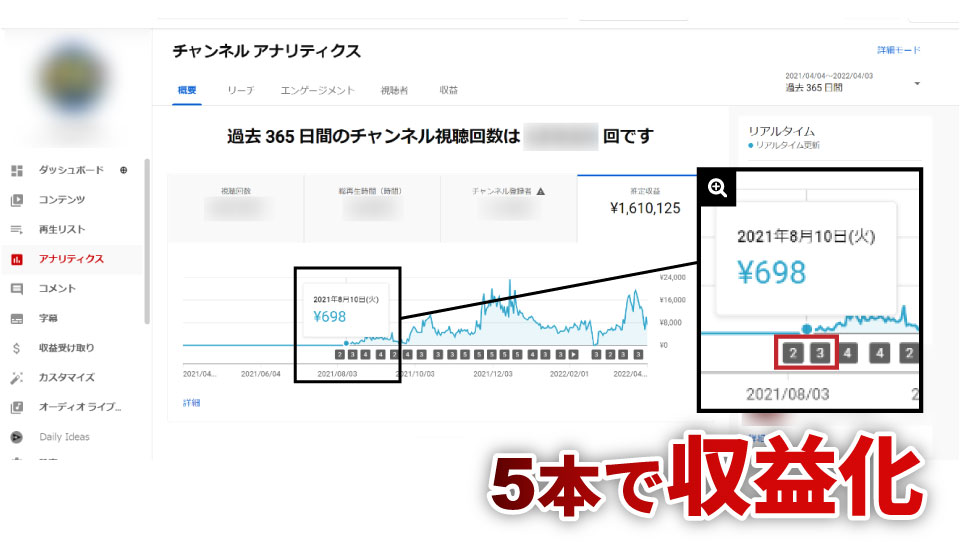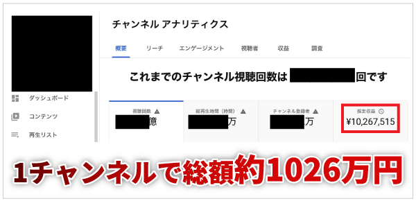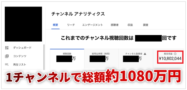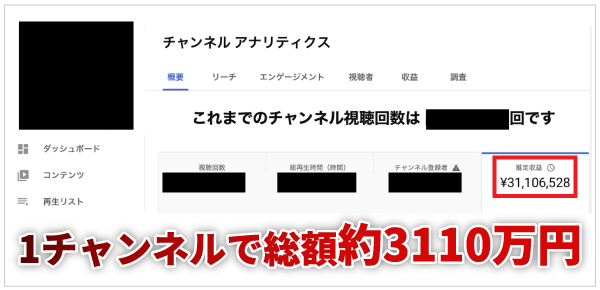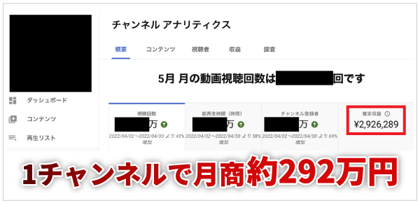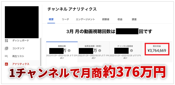 直近では2022年3月にはチャンネルの広告収益1200万円とチャンネル売却で月収3000万円を達成できました。